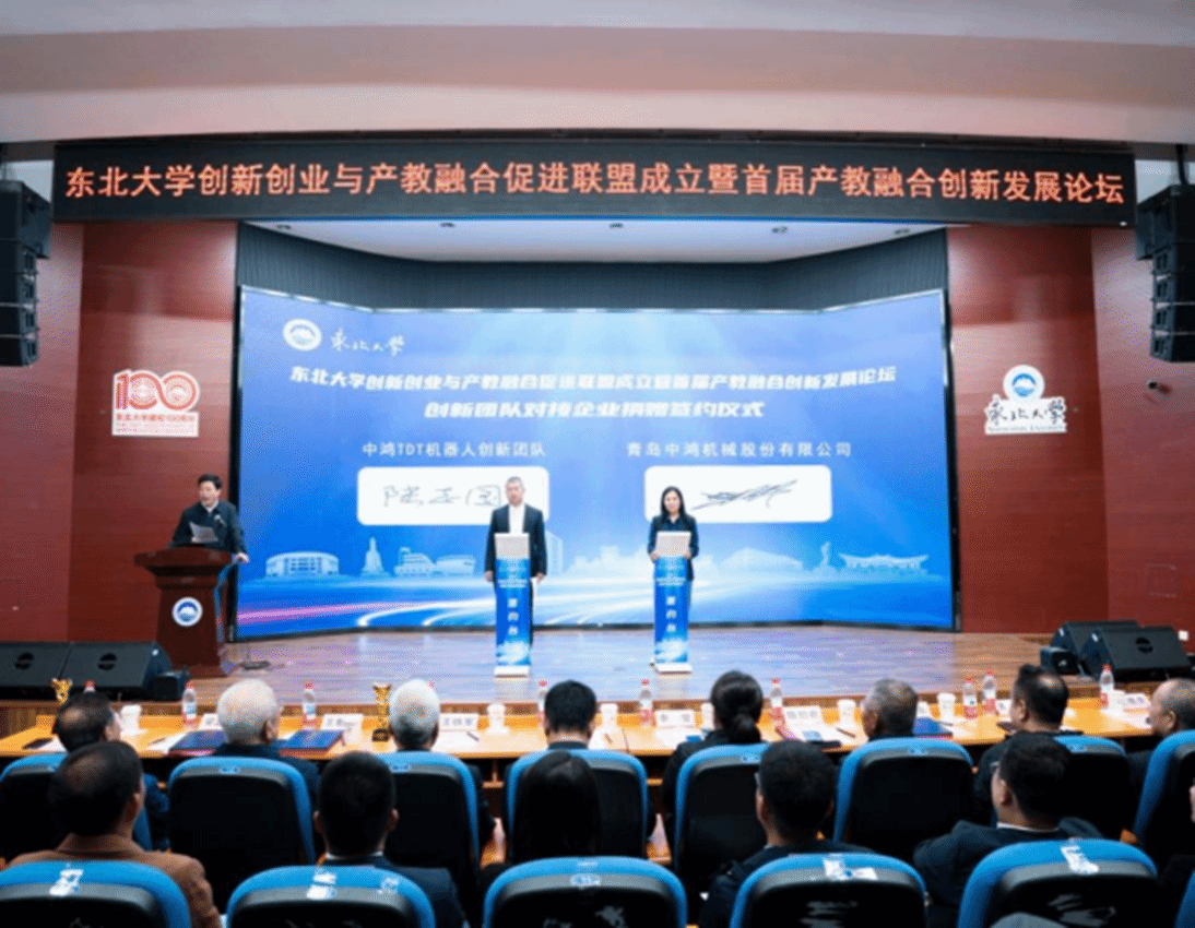 青岛中鸿沉型机械股份无限公司取中鸿T-DT机械人立异团队签订捐赠和谈,专项支撑团队开展科研取人才培育。