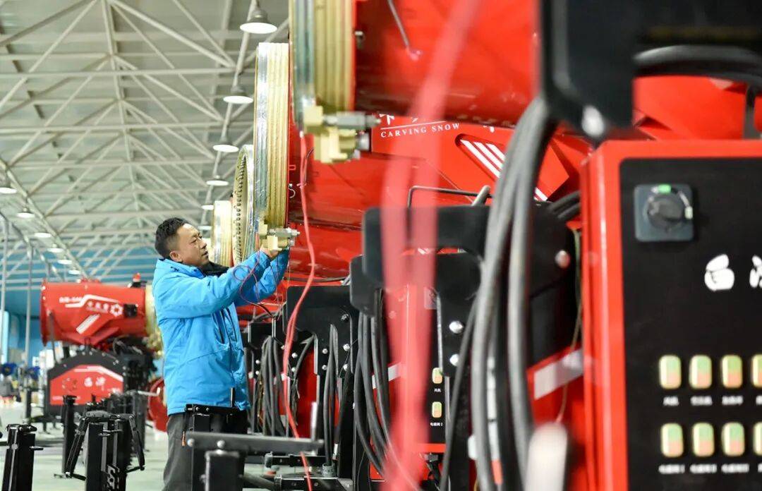 正在卡宾滑雪配备制制无限公司的厂区,一排排簇新的制雪机划一排队,正正在进行出厂前的最初检测。跟着冰雪市场持续升温,企业订单同比增加,出产打算已排至岁尾。