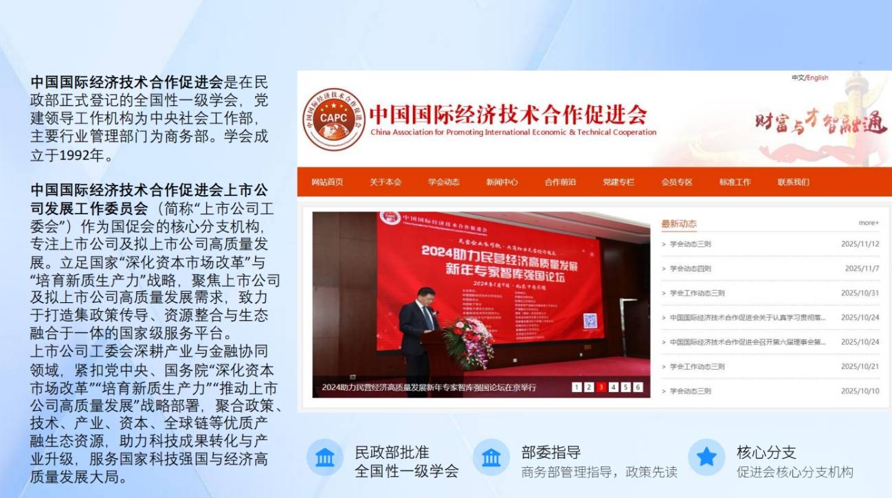 中国国际经济手艺合做推进会上市公司成长工做委员会(以下简称“上市公司工委会”)恰是为领会决财产取本钱脱节这一痛点而存正在的“超等毗连器”。