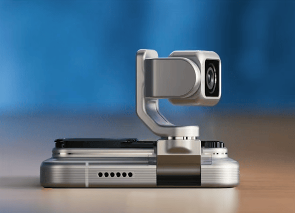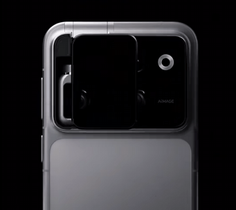 前段时间展现的实机显示,其背部左侧的从摄是机械云台布局,通过两段式折叠收纳,不消时可收纳于机身内,利用时一键展开。
