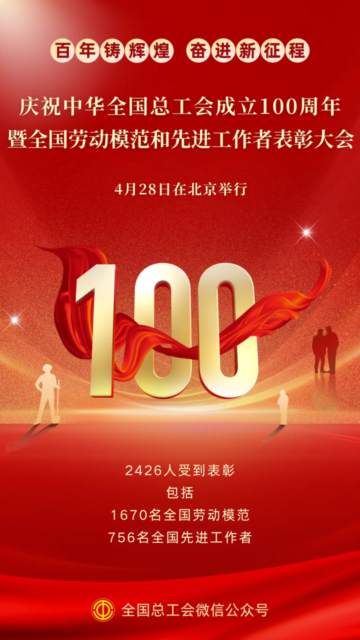 4月28日上午,庆贺中华全国总工会成立100周年暨全国劳动榜样和先辈工做者表扬大会正在举行,浙江共96人获得全国劳动榜样称号、全国先辈工做者称号。