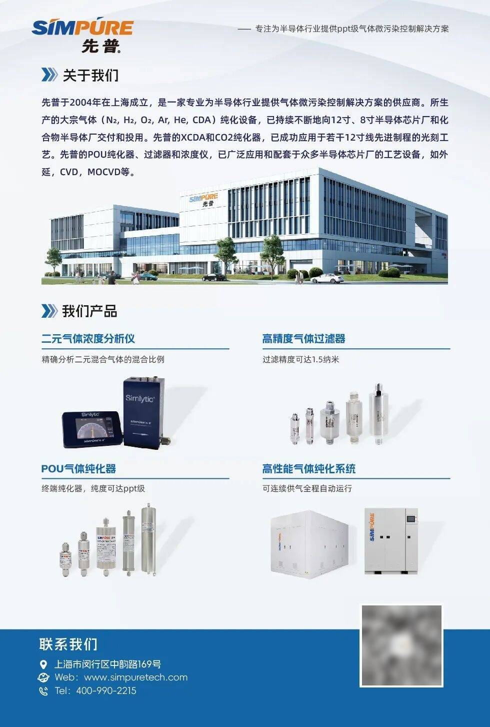 上海先普科技股份无限公司是一家次要专注于半导体行业的气体纯化器和气体过滤器研发、出产和发卖的高新手艺企业,努力于为半导体及其他高科技范畴客户供给优良靠得住的气体微污染节制处理方案。公司是国内半导体行业气体微污染节制处理方案的供应商,颠末二十余年的成长,正在该范畴构成了丰硕的产物矩阵。正在气体纯化器范畴,公司是国内第一家9N级别气体纯化器制制商,正在20余年的成长过程中,公司正在充实控制国际先辈气体纯化焦点手艺的根本上,颠末持久立异研究,已自从开辟十余个系列上百种产物。公司9N系列纯化产物采用国际成熟的催化剂(Catalyst)、吸附剂(Adsorber)和吸气剂(Getter),可用于纯化大气体(氮气、氩气、氦气、氢气、氧气、CDA等)和部门特种气体(二氧化碳、氨气、出口分项杂质含量最低可去除到ppt级,过滤精度达到0。003微米,达到世界先辈程度。公司已为半导体行业开辟了数十个系列上百种产物,采用支流的PTFE滤膜、不锈钢烧结滤芯和镍烧结滤芯的过滤手艺,合用于各类大气体和特殊气体,能够过滤1。5纳米及以上的颗粒物,达到世界先辈程度。